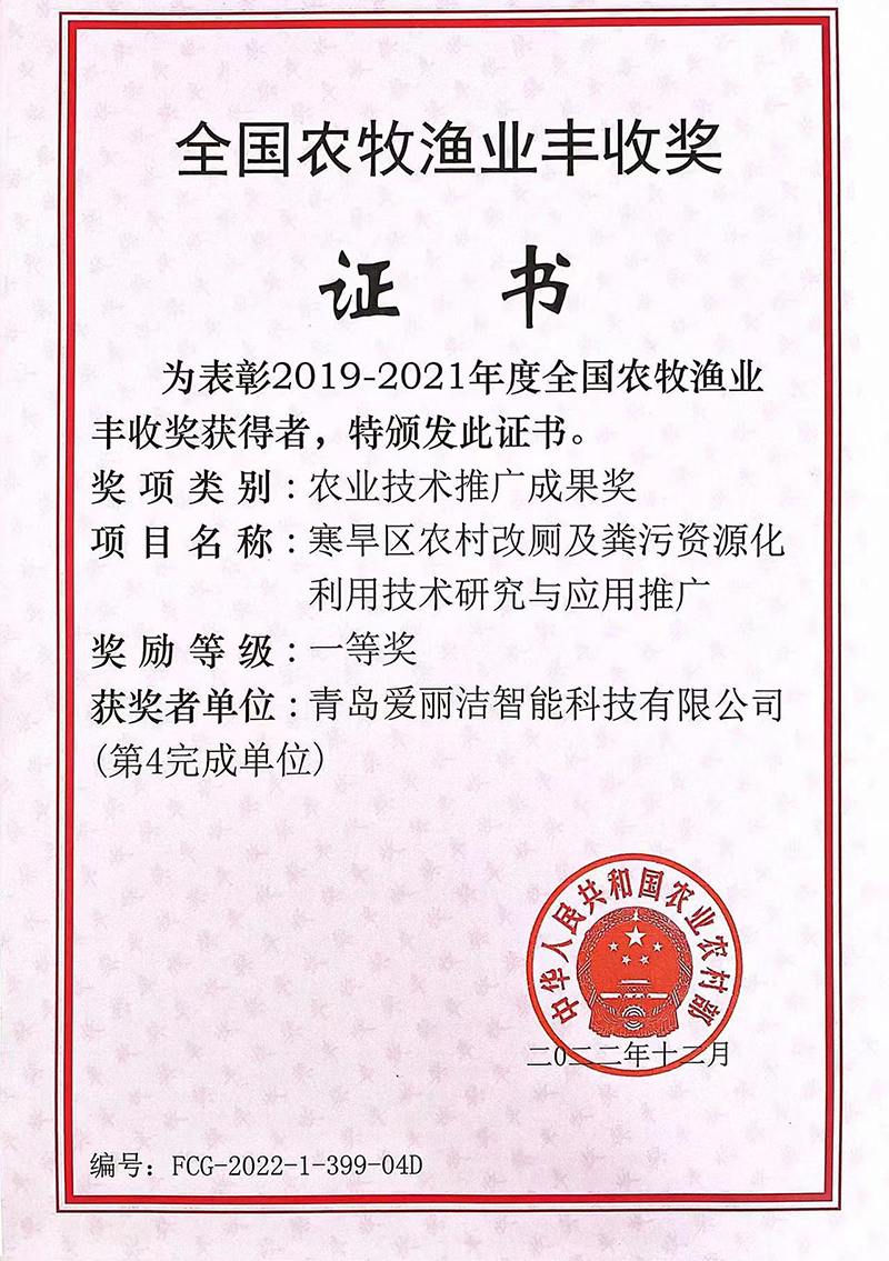 青島愛麗潔智能科技有限公司成立于2015年7月,注冊資金2000萬,是一家專注于提供農村廁所解決方案、產品研發(fā)、生產和銷售于一體的企業(yè),已通過質量管理體系認證,先后被評為國家級“高新技術”企業(yè)、“專精特新”示范企業(yè)、榮獲德國當代好設計優(yōu)勝獎等諸多榮譽,公司擁有碩士、博士組成的專家研發(fā)團隊,獲得國家知識產權局頒發(fā)的五十多項專利。我公司早在于2017年開始同“農業(yè)農村部規(guī)劃設計研究院”進行密切合作,共同研發(fā)出適合我國“農村廁所改造”和“糞污資源化利用”的專利產品,有效的解決了農村廁所問題。