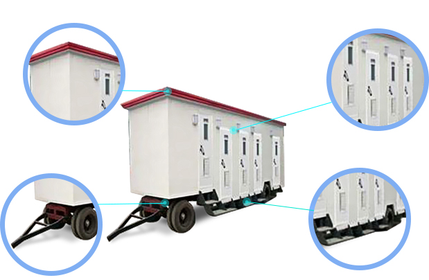 產(chǎn)品造型同時(shí)適用于水沖直排型移動廁所、微生物型移動廁所、泡沫封堵型移動廁所、免水打包型移動廁所、高壓氣水沖移動廁所。
